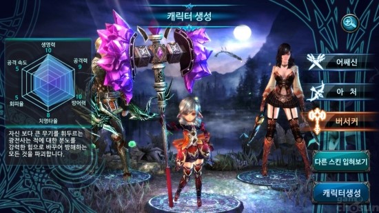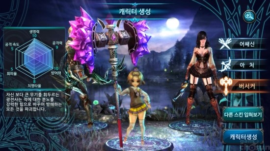 러스티블러드는 섹시한 여성 캐릭터 어쌔신, 왕자를 연상케 하는 금발 미소년 아처, 아기자기하고 귀여운 소녀 버서커 3개의 직업으로 이루어져 있다.