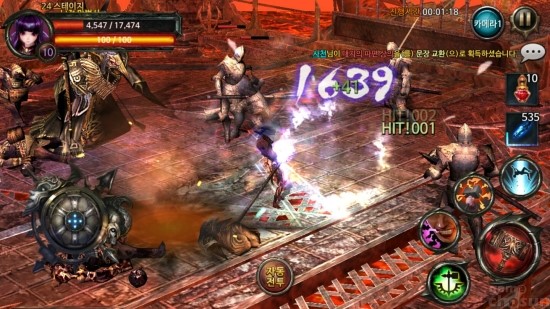전투 방식은 화면 왼쪽 아래의 조이스틱으로 조작할 수 있으며 오른쪽 아래의 스킬 메뉴에서 스킬을 사용할 수 있다. 스킬은 기본 스킬과 고급 스킬, 패시브, 특수 스킬로 나누어져 있다.