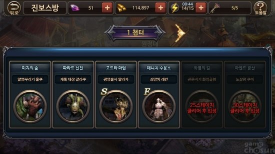 러스티블러드를 플레이를 하고 난 느낌은 절대 호락호락한 게임이 아니라는 것이었다. 기본적으로 자동 전투는 지원되지만 자동 스킬은 지원되지 않고 자동 전투를 진행해도 맵의 특성상 게이머를 공격하는 장애물이 많아 깔끔하게 클리어하는 경우가 생각보다 드물다.