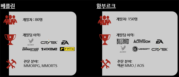 특히, '디아블로' '월드오브워크래프트' '콜오브듀티' 등 유수의 온라인게임 개발을 이끌었던 개발자들이 함께 하고 있으며, 각 장르별 플랫폼별로 특화된 스튜디오를 보유하고 있다.