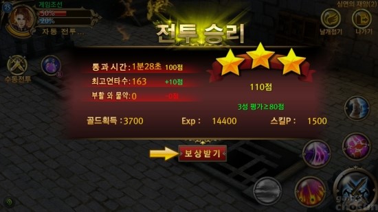 등급은 던전 클리어 후 최종 점수가 80점 이상일 경우 최고 등급인 3성을 받게 된다. 보상은 획득 별 개 수만큼 선택할 수 있어 만약 3성으로 던전을 클리어했다면 3가지의 보상을 선택해 무작위로 획득할 수 있다.