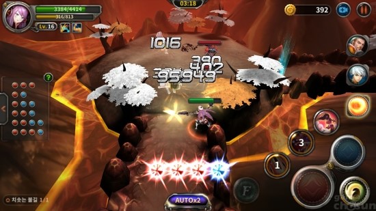 또한 콤보 공격을 하면 콤보력이 쌓여 주황색 버튼이 활성화되는 것을 확인할 수 있는데 이를 누르면 대기하고 있던 두 캐릭터 중 한 캐릭터가 소환되어 같이 전투를 펼치게 된다.