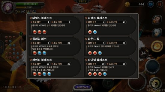 ◆ 게임 상황에 따라 콤보를 조합해야 하는 것이 관건