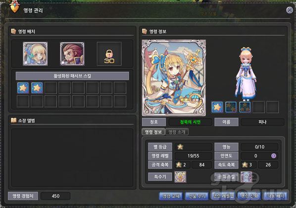 다양한 종류의 영령 중 자신이 원하는 영령을 전투에 배치시켜 이들을 레벨업시키거나 진화시켜 더욱 강력하게 성장시켜 나갈 수 있다. 영령은 성장함에 따라 그 자신의 능력이 상승함은 물론 캐릭터가 받는 각종 보너스 수치가 증가하고, 특수한 패시브 스킬과 축복 스킬이 배우게 된다.