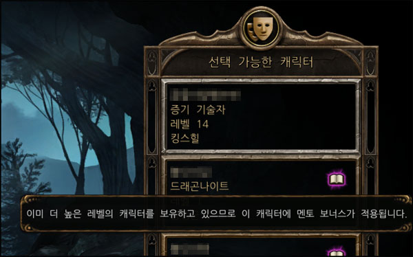 세컨캐릭터(일명 부캐)에 대한 혜택도 있다. 현재 캐릭터가 계정 내 최고레벨 캐릭터보다 레벨이 낮을 경우 '멘토 보너스'버프가 적용돼 추가 경험치를 습득한다. 만약 세컨캐릭터가 본캐릭터의 레벨을 넘어서면 역활이 바뀌며 해당 캐릭터가 멘토가 되는 구조다.