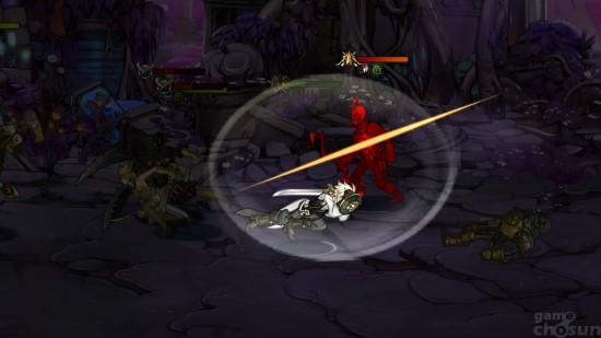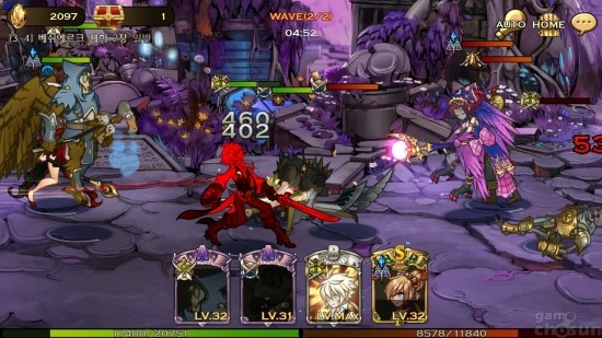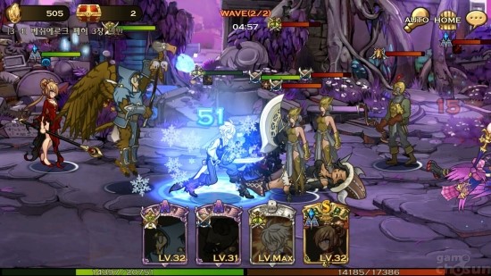 전투는 횡스크롤 전투 방식으로 게이머는 전투 시 스킬만 사용해주면 된다. 스킬은 화면 아래 파티원들의 아이콘이 반짝거릴 때 터치하면 발동된다.