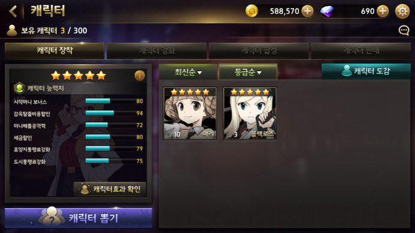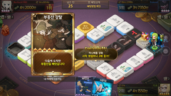 캐릭터의 경우 부동산 통행료를 더 받거나 미니게임 진행 시 승리 보상을 더 받는 등 게임머니에 대한 능력을 가지고 있다. 각 능력은 캐릭터의 등급과 강화에 따라 더 좋은 캐릭터를 가질 수 있기 때문에 꾸준한 강화가 필수다.