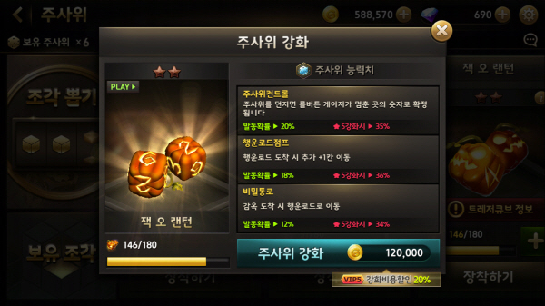 주사위는 내가 원하는 숫자를 뽑거나 이벤트 타일에 혜택을 주는 효과들이 대부분이다. 모든 능력은 발동 확률이 있어 무조건 효과를 보는 것은 어렵지만, 결정적일 때 큰 도움을 주는 경우도 종종 발생한다.