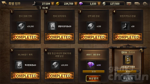 ▲ 각종 달성미션 외 특별임무, 스테이지 진행 보상 등 다양한 보상이 주어진다.