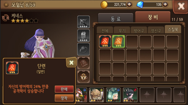 예를 들어, 생명력이 낮은 '공격형'의 동료에 공격력에 따라 방어력이 증가하는 스킬북을 장착하면, 충분한 스탯 확보로 탱커의 역할을 수행 할 수 있다.