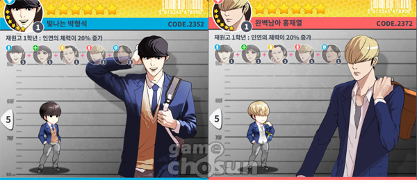 ▲ 인기 웹툰 외모지상주의에 나오는 훈남들도 갓오하 게임에 등장한다.