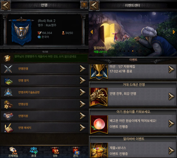 ▲ 연맹시스템으로 할 수 있는 것들과 다양하게 진행되는 이벤트들