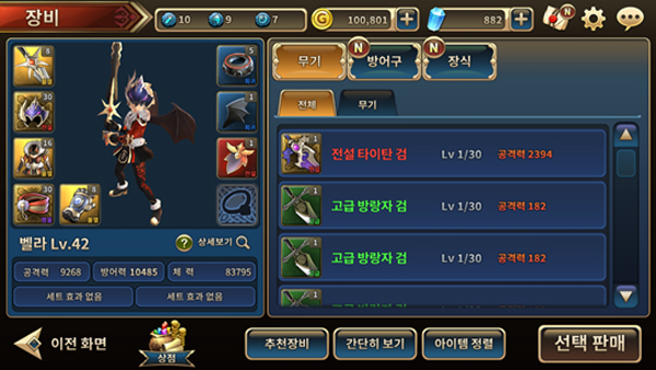[총 9개의 착용 슬롯 제공, 무기와 방어구에 따라 캐릭터 외형 변경 가능]