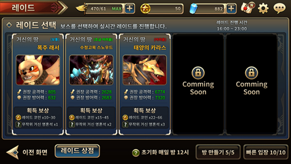 ‘레이드’는 4인 실시간 협동 콘텐츠로 다른 유저와 협동하여 거신의 모습을 한 보스를 물리치고, 거신의 승급을 위한 재료를 얻을 수 있다. 다른 유저들과 실시간으로 플레이하는 만큼 기존 솔로 플레이와는 또 다른 협업 플레이만의 재미를 만끽할 수 있는 것이 특징이다.