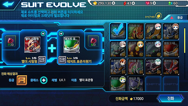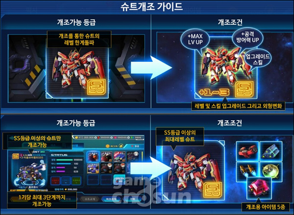 ▲ 2종의 슈트를 최대레벨로 강화해 슈트를 진화시킬 수 있다