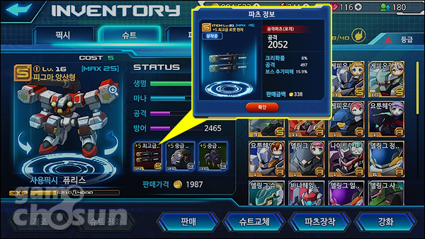 ▲ 3종의 파츠를 강화 및 장착해 슈트를 성장시킬 수 있다