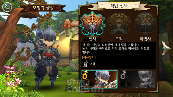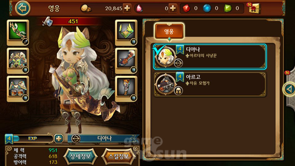 ▲ 영웅들을 선택해 파티를 이뤄 전투를 치른다. 좋은 장비의 확보가 중요하다.