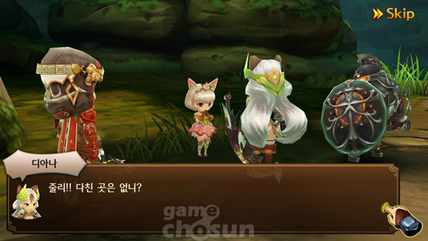 실제로 이 게임은 장비와 캐릭터 조합을 기반으로 하는 파티형 RPG다. 시나리오를 진행하며 캐릭터와 장비를 얻어 스테이지를 클리어할 수 있다. 게임을 접하면 귀여운 캐릭터와 깔끔한 인터페이스, 다양한 장비, 화려한 스킬 효과 등이 구현된 것을 확인할 수 있다. 또한 스테이지 시작과 종료 시에 컷신으로 스토리를 풀어냈고 풀 보이스 음성을 입혀 몰입감을 높였다.