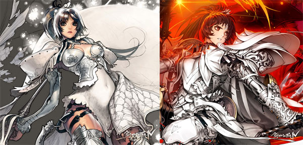 현재를 살아가는 유저 분들의 마음 속 생각에 어울리는, 좀 더 현대적인 무언가를 찾아야만 했지요. 따라서 전체적인 느낌은 계승하되, 복식이나 장식, 헤어스타일의 표현 등에서는 좀 더 현대적이고, 세밀하게 표현하고자 노력하였습니다. 유저분들이 보셨을 때 예전의 인물과 같은 느낌을 받되. 오래 보아도 질리지 않고, 자세히 보아도 단순하지 않은 형태로 표현하는 것에 중점을 두었습니다. 모호한 기억 속의 형상이 눈 앞에 보이는 듯 선명해 지는 것이 목표였습니다.