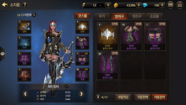 게임은 시종일관 사용자를 편하게 해준다. 튜토리얼을 마치고 모험모드는 시작하면 해당 UI(유저인터페이스)에서 장비 강화를 위해 소지품 창을 선택하는 것도 간편하고 장비를 강화할 때도 불필요한 장비를 하나씩 선택할 필요 없이 한 번에 선택해서 진행할 수 있다.