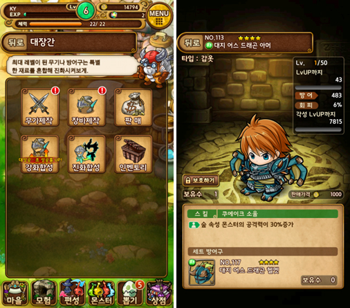 ◆ 더 강해지고 싶다면? 몬스터 육성 및 방어구를 업그레이드