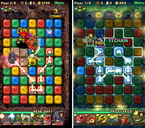 게임 내 스테이지는 약 200개 이상이며, 강력한 보스와 다양한 트랩이 숨겨져 있다. 이용자들은 최대 4명까지 파티를 결성해 실시간으로 협력 플레이를 할 수 있다. 또한 다른 이용자의 리더 몬스터를 서포터로 데려가 위기에 처할 시 대신 전투에 참여 시키는 것도 가능하다.