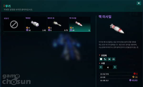 예를 들어 핵탄두를 많이 탑재해 한 번에 많은 대미지를 줄 것인지 아니면 레이저포로 지속적인 공격을 할 것인지, 추가 방어막을 씌울 것인지 갑판의 성능을 높일 것인지 등 다양한 선택을 할 수 있고 어려운 상대도 쉽게 처치할 수 있다.