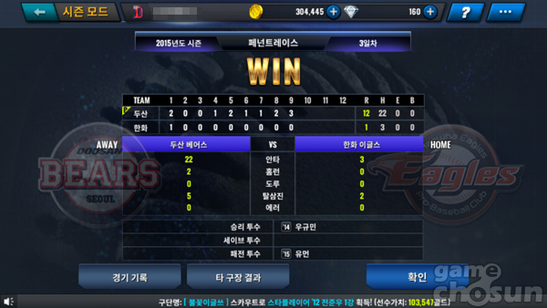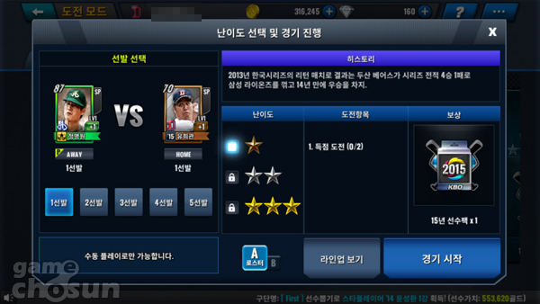 또 KBO(국내프로야구) 원년부터 현재까지 한국 프로야구의 역사를 경험할 수 있는 도전 모드와 박병호, 강정호, 유희관 등 국내 주요 선수들의 타격 및 투구폼을 완벽히 구현해 모바일 야구 게임의 '완성판'이라고 해도 과언이 아니었다.
