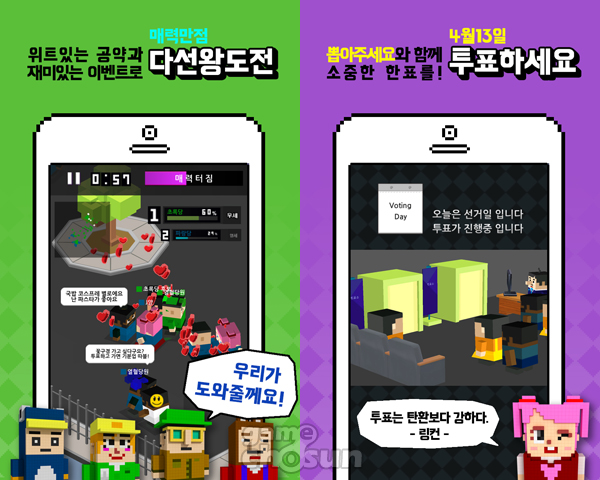 마찬가지로 게임업계도 매년 선거를 주제로 한 공익광고를 후원하거나 선거 관련 이벤트를 진행해 게이머들의 투표를 지향하고 있는데 올해는 특이하게 '선거'를 주제로 한 국산 모바일게임이 등장해 눈길을 끌고 있다.