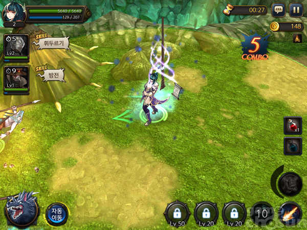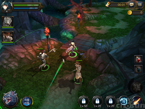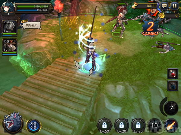 또 주인공 캐릭터의 직업마다 강력한 ‘변신’ 스킬과 ‘카운터’ 스킬이 존재해 직업에 따른 개성 있는 플레이가 가능하고 원하는 적을 타겟팅한 후 동료에게 집중 공격을 하게 할 수도 있는 등 전략적인 전투에 중점을 둔 것을 알 수 있었다.