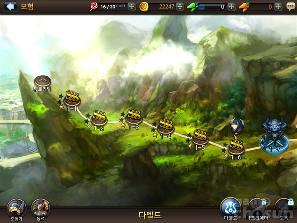 그 밖에 ‘모험모드’에서는 스테이지마다 관련 스토리가 카툰 형식으로 진행돼 흥미를 유발하고 마을에 있는 모닥불을 통해 휴식을 취하고 버프를 받을 수 있으며 유저간의 물건을 사고팔 수 있는 ‘개인 가판대’ 등 온라인 MMORPG에서 볼 수 있었던 시스템을 게임 곳곳에 잘 구현한 점도 눈길을 끌었다.