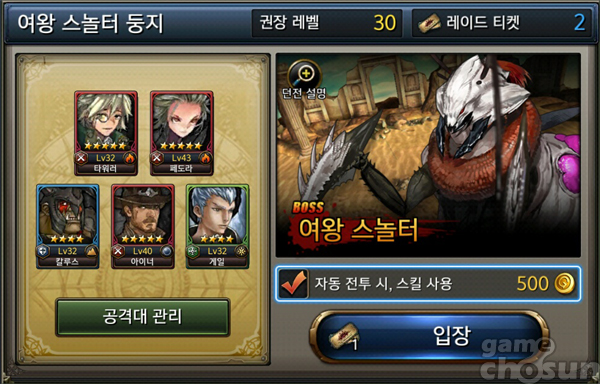 특히 레이드 시스템에서 덱 구성의 중요성이 더욱 커지는데 주인공을 포함한 총 6명의 캐릭터로 ‘공격대’를 꾸릴 수 있으며 탱커와 딜러, 힐러의 조합에 따라 강력한 보스라도 쉽게 공략하는 것이 가능하다.