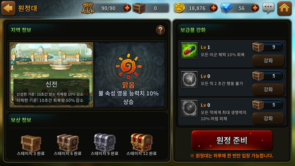원정대는 이용자가 육성한 15명의 영웅을 선발대와 후발대로 구성해 다른 12명의 이용자 파티와 연속 전투를 치르는 PVP다. 원정대 전투에는 전략성을 띈 전용 스킬이 존재해 좀 더 박진감 넘치는 전투를 치를 수 있다. 갈수록 강한 이용자와 매칭돼 끝까지 클리어하기는 어려운 편이지만 그만큼 보상도 크다.