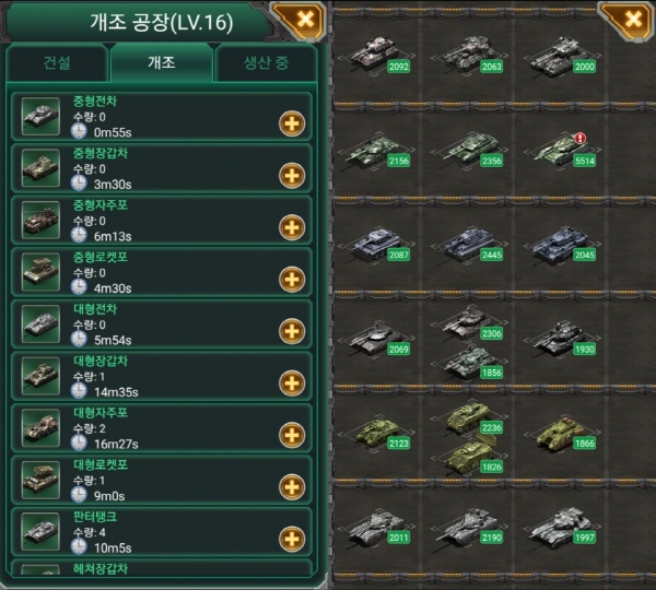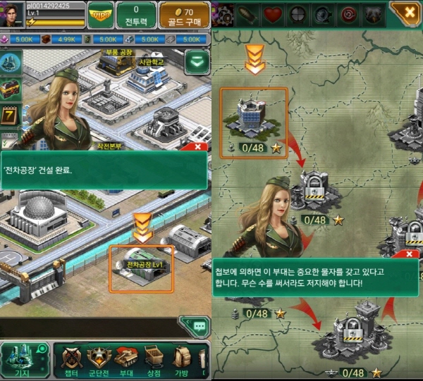 시설명과 각 메뉴명을 보면 굉장히 직관적이라는 걸 알 수 있다. ‘지휘본부’, ‘전차공장’, ‘사관학교’, ‘부품공장’ 등 기지 내 배치되어 있는 각 시설들은 이름만 들어도 그 쓰임새를 알 수 있을 정도로 직관적인 명칭을 갖고 있어 유저 혼란을 최소화하고 있다.