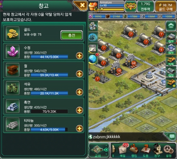 메인 화면 좌/우측에 임무 리스트, 전차 생산, 과학 연구 상황 등 수시로 확인해야 하는 메뉴를 퀵버튼 형태로 배치해 유저 편의에 신경 썼다.