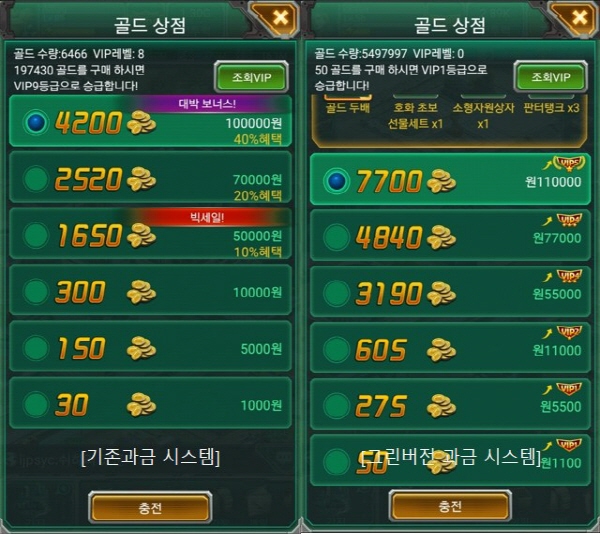 다른 상품 과금 가격도 비슷하게 비율로 조정돼 그린버전에서는 오리지널에 비해 같은 금액을 과금 했을 때 두 배에 가까운 골드를 받게 됐다.