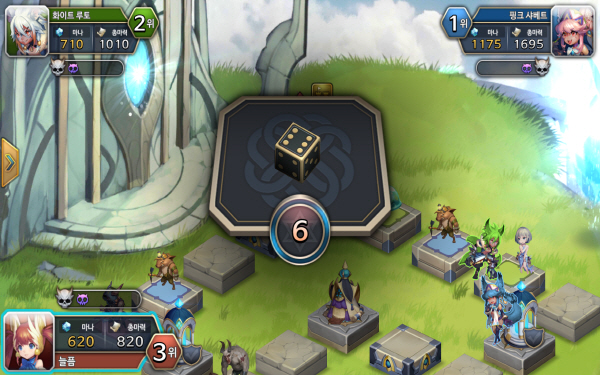 보드게임의 특징인 주사위를 굴려 캐릭터를 이동시키기 때문에 '모두의마블' '주사위의신'과 같은 게임을 떠올릴 수 있는데, 이 게임은 자신의 카드를 가지고 전략을 펼치는 '카드배틀'에 초점이 맞춰져 있다.