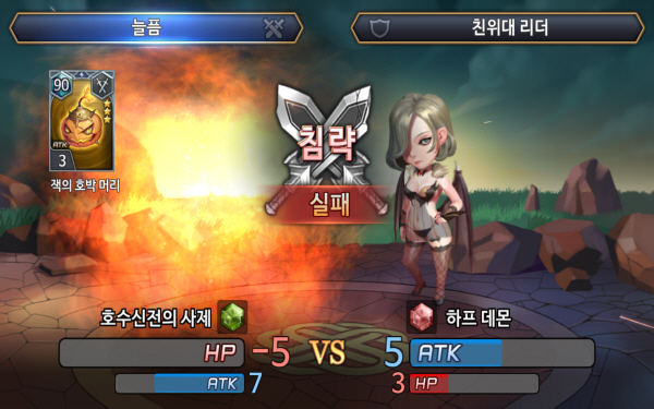만약 상대 크리쳐가 소환된 상태라면 침략 전투를 시작한다. 기본적으로 침략 크리쳐가 먼저 공격을 하지만 아이템 카드에 따라 역공을 하거나 크리쳐의 능력치를 올릴 수 있어 매 전투마다 전략이 필요하다.