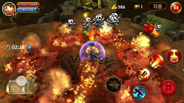 캐릭터를 조합해 스테이지에 진입하자마자 느낄 수 있는 것은 ‘현대판 메탈슬러그’라고 불릴 정도의 시원한 액션감이다. 두 명의 헌터 캐릭터가 끊임없이 쏟아내는 총알과, 헌터 조합에 따라 사용할 수 있는 다양한 스킬은 자동 전투 중에도 자꾸만 스마트폰 화면에 손이 가게 한다.