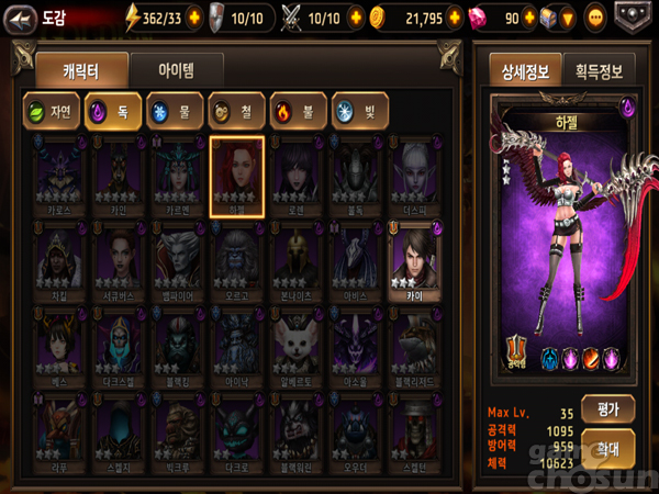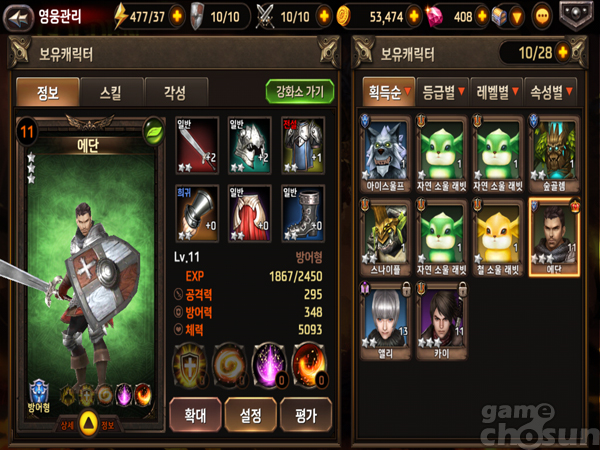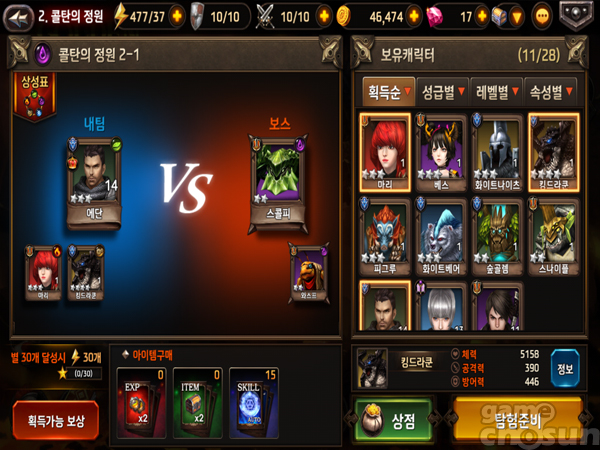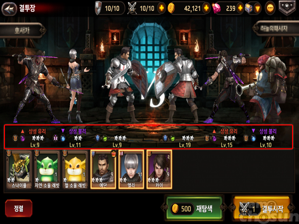 이때 아군과 적군 파티의 상성을 확인할 수 있는데 단순히 레벨이 높거나 등급이 높다고 무조건 승리하는 것이 아니라 상성에서 우세한 쪽이 대체로 높은 승률을 보였다. 즉 PVE와 PVP 등 게임 전반에 걸쳐 영웅 상성이 중요한 셈이다.