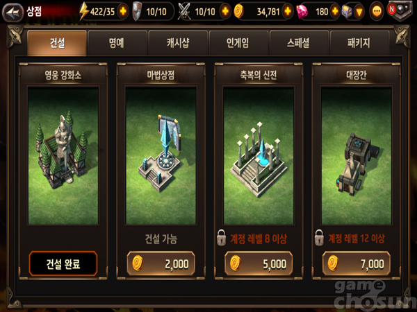 그밖에 수집형 RPG답게 게임 내 등장하는 모든 영웅의 외형을 미리 확인하고 스킬까지 써볼 수 있는 도감 시스템이 잘 구현돼 있었으며 특정 레벨을 달성해 건물을 지어 영웅과 무기를 강화하고 보상을 얻는 시뮬레이션적인 요소를 메인 화면에 탑재한 것 등이 눈길을 끌었다.