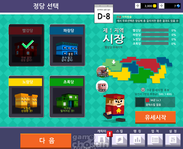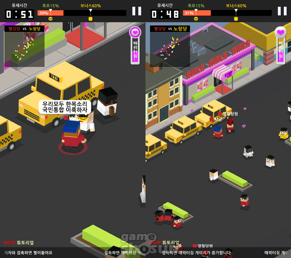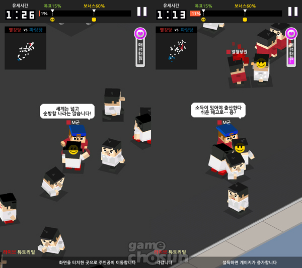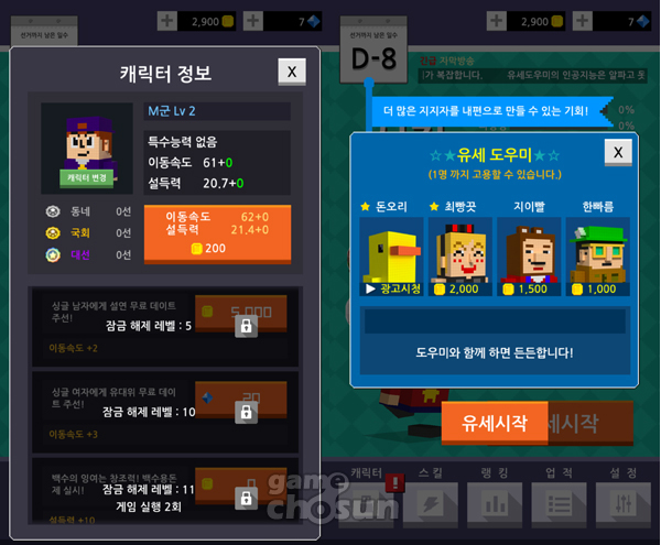 이번 작에서는 전작의 단순했던 남녀 캐릭터에서 벗어나 총 44종의 캐릭터가 등장하며 상대 후보를 방해하거나 자신 주변으로 유권자들을 모으는 등 각자 고유의 스킬을 가지고 있어 더욱 높은 몰입도를 제공한다.