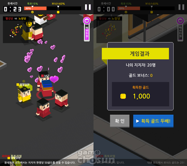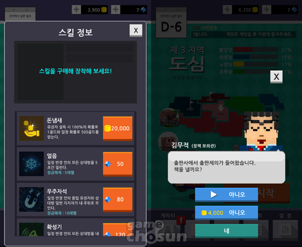 또 동네의원에서 시작해 스테이지와 레벨을 올려 국회의원과 대통령 선거까지 도전할 수 있어 게임의 플레이타임도 길어졌으며 게임 중간 중간에 지루함을 없애기 위한 미니게임도 존재하는 등 모바일 인디게임이지만 다양한 콘텐츠를 탑재한 부분도 눈길을 끌었다.