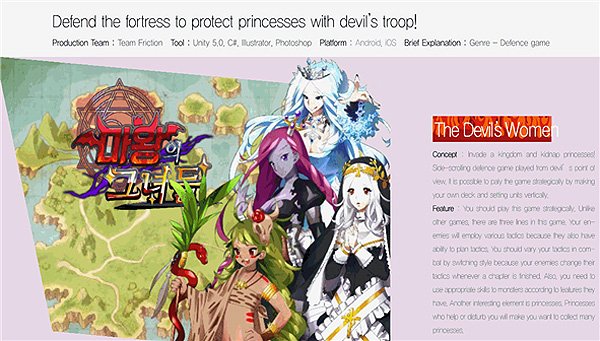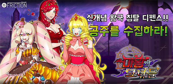 '마왕의 그녀들'은 마왕군의 시점에서 펼쳐지는 횡스크롤 RPG 디펜스 게임으로 왕국을 침략해 공주를 모으는 내용을 담고 있다.