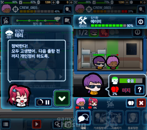 ▲ 스페이스크루는 동료의 감정 상태와 친밀도를 매우 중시하는 시뮬레이션게임이다.