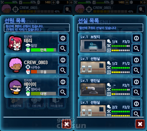 특히 선실의 역할에 맞는 동료 승무원을 고용하고 친밀도를 쌓는 것이 게임에서 가장 중요한데 이 과정에서 생리적 욕구부터 애정 욕구까지 다양한 감정 상태 변화를 넣어 시뮬레이션게임 특유의 관리하는 재미를 강조했다.