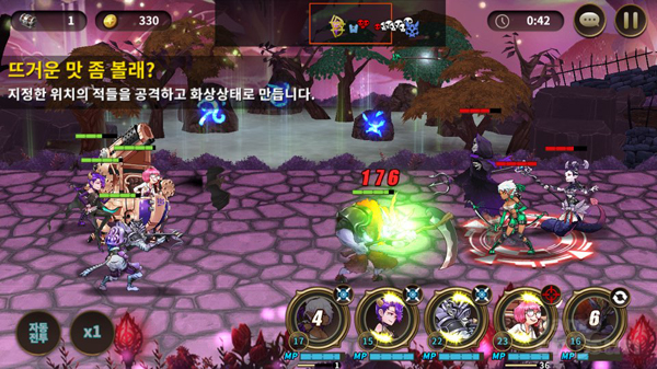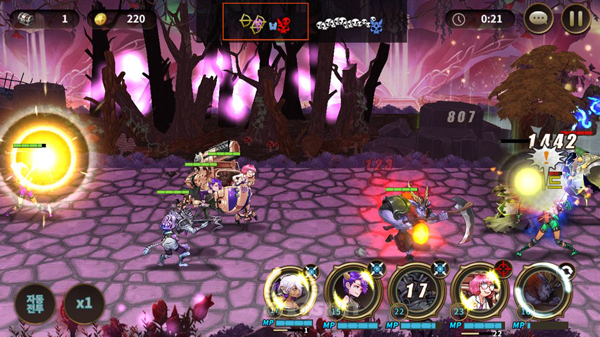 '카오스크로니클'은 기존 모바일게임처럼 자동전투와 2배속 시스템이 탑재됐지만 이처럼 스킬 전략성이 강조된만큼 수동 전투가 더 재미 있는 편이다.