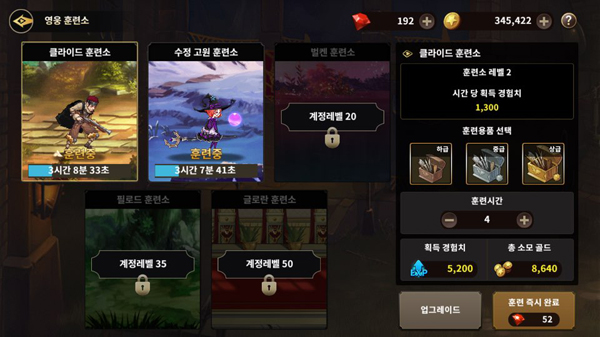 △ 게임을 꺼놓는 동안에도 영웅들을 성장시킬 수 있는 훈련소