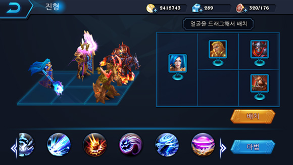 모바일 전략 RPG(역할수행게임) '매직리전'은 전투시 유저와 4명의 영웅 등 총 5명이 진형을 이뤄 전투를 벌이는 게임이다.