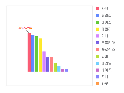 조용하고 차분한 라헬이 가장 인기가 많아 인기 순위 1위에 올랐고 뒤를 이어 부끄러움을 많이 타는 노력파 소녀 퓨리스와 매사에 적극적이지만 실수가 잦은 요리 파괴자 레아스가 인기 순위 2위와 3위에 나란히 올랐다.